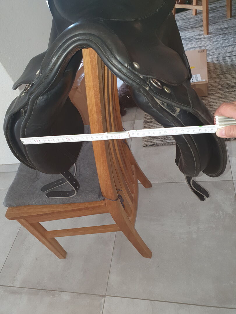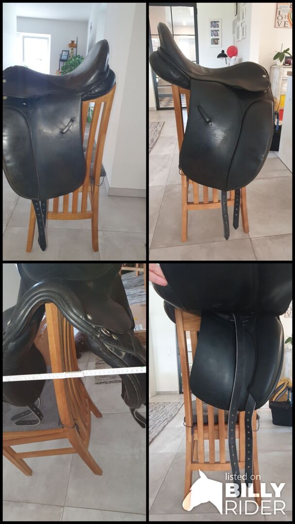 Well maintained dressage saddle Windsor, 16 inch - I am selling our dressage saddle as it no longer fits perfectly on our final size pony. It is an English Windsor saddle, Walsall, Springtree and is 16 inches. The gullet width is probably around 32cm. He has just been to the saddler for a check-up and has had 4 new panels fitted. Unfortunately I can't tell you how old it is, we bought it last year with our pony. The saddle was regularly cared for, stored warm and dry and was in use until last month. The saddle has no damage, but does show signs of wear. The padding is good, not hard or 'knobbly'. Please contact me if you have any further questions