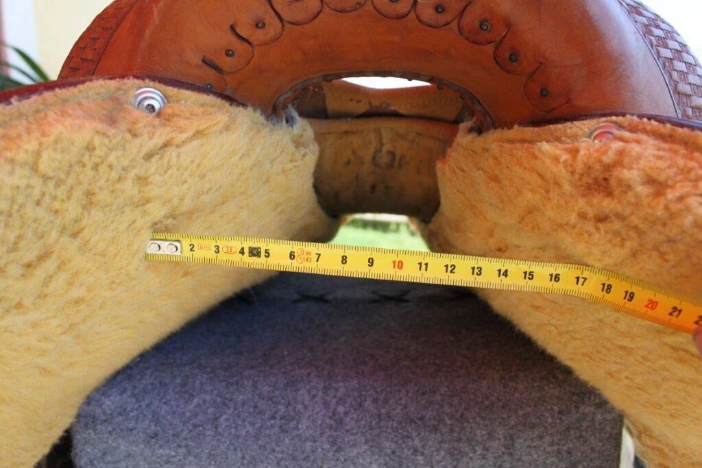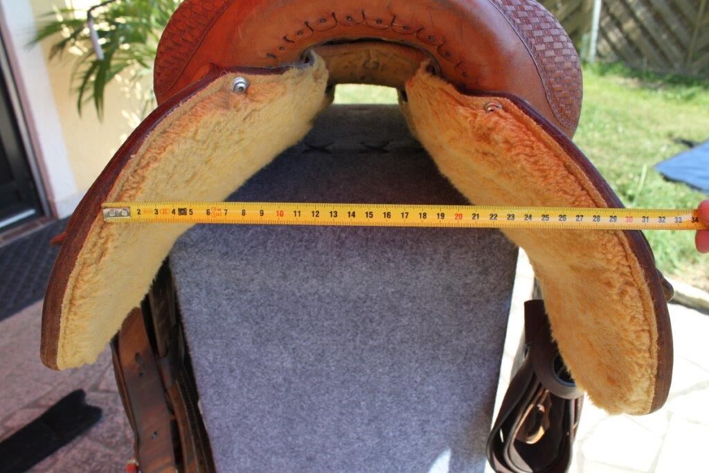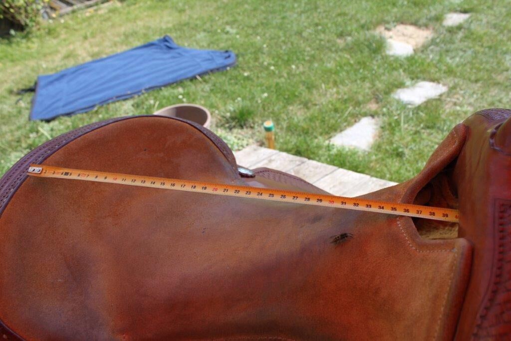 Distance between conchas approx. 17 cm, length 70 cm, seat 16".