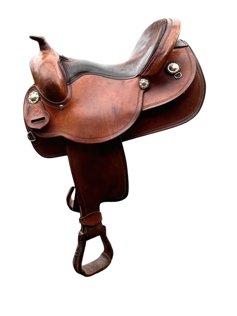 Western saddle Roundskirt Montana - I am selling this beautiful and well preserved western saddle (Roundskirt) from Montana Saddlery. The model number is 163. Incl. fender, stirrups, off billet and tie strap. The saddle is really very comfortable (seat size approx. 16.5). It is also ideal for horses with a slightly shorter back (full quarter). Total weight only approx. 12kg. New price was probably 1.800,-. The saddle was originally a gift. Therefore I have no bill of sale or similar.