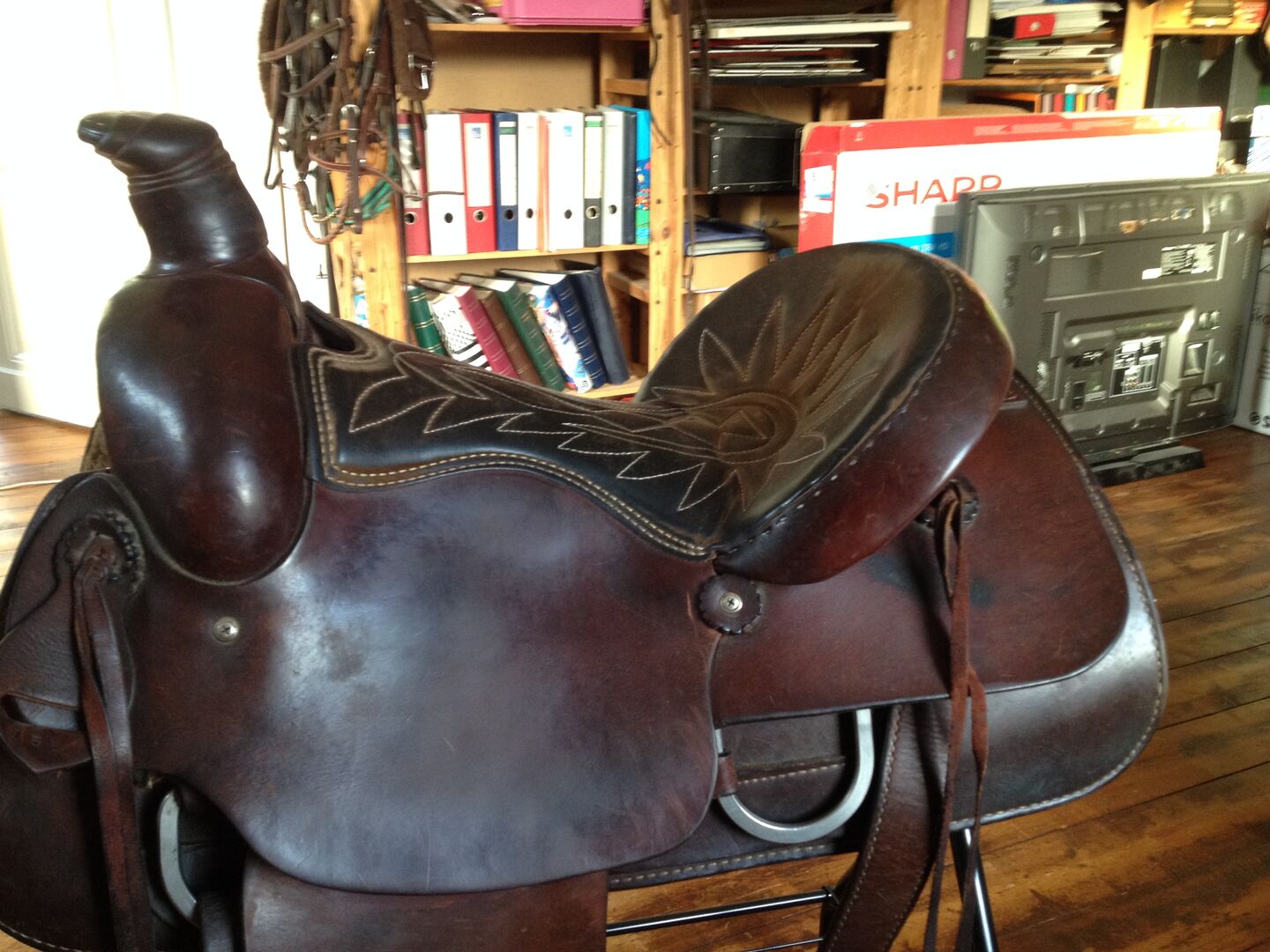 Western saddleTexas Best - very stable western saddle of the brand Texas Best from USA, color dark brown without ornaments, working saddle with deep, comfortable seat, QH tree, dimensions between the conchas about 20 cm . More info and pictures gladly on request