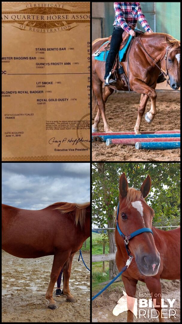 He is 16 years old, Quarter of the old breed with sound foundation and good pedigree. He is about 150 cm tall and was in training for three months in early 2020 and has been ridden by the trainer 1 to 2 times a week since 2022.
